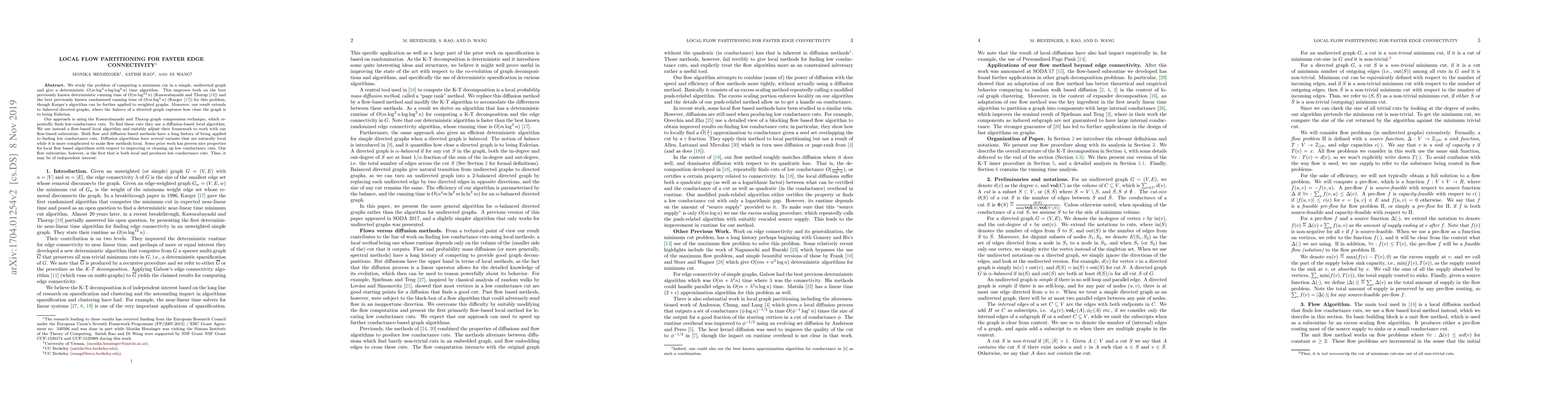 We study the problem of computing a minimum cut in a simple, undirected graph and give a deterministic $O(m \log^2 n \log\log^2 n)$ time algorithm. This improves both on the best previously known deterministic running time of $O(m \log^{12} n)$ (Kawarabayashi and Thorup, STOC 2015) and the best previously known randomized running time of $O(m \log^{3} n)$ (Karger, J.ACM 2000) for this problem, though Karger's algorithm can be further applied to weighted graphs. Moreover, our result extends to balanced directed graphs, where the balance of a directed graph captures how close the graph is to being Eulerian. Our approach is using the Kawarabayashi and Thorup graph compression technique, which repeatedly finds low-conductance cuts. To find these cuts they use a diffusion-based local algorithm. We use instead a flow-based local algorithm and suitably adjust their framework to work with our flow-based subroutine. Both flow and diffusion based methods have a long history of being applied to finding low conductance cuts. Diffusion algorithms have several variants that are naturally local while it is more complicated to make flow methods local. Some prior work has proven nice properties for local flow based algorithms with respect to improving or cleaning up low conductance cuts. Our flow subroutine, however, is the first that is both local and produces low conductance cuts. Thus, it may be of independent interest.