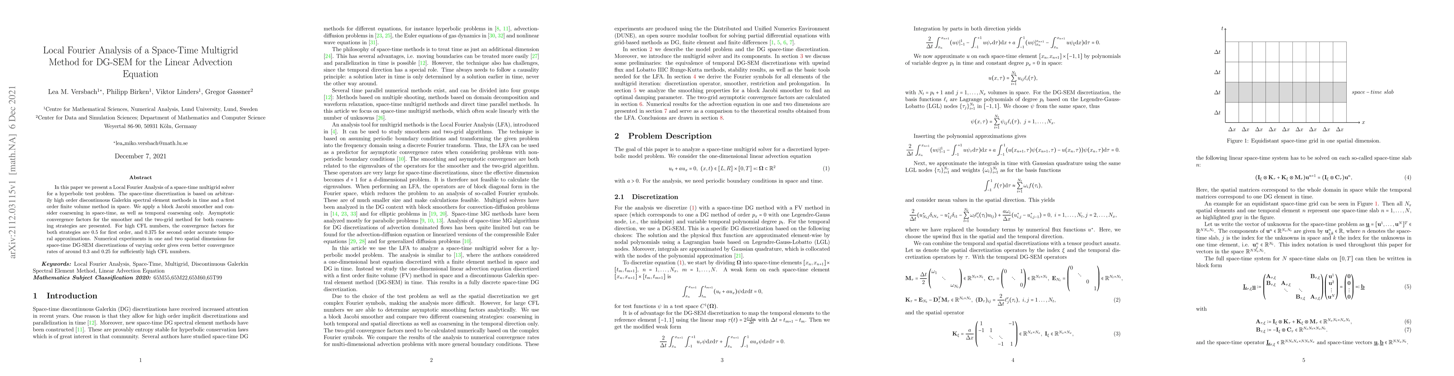This paper conducts a Local Fourier Analysis of a space-time multigrid method for solving the linear advection equation using high-order DG-SEM in time and finite volume methods in space. It presents convergence factors for both space-time and temporal coarsening strategies, achieving optimal rates around $0.3$ and $0.25$ for high CFL numbers.