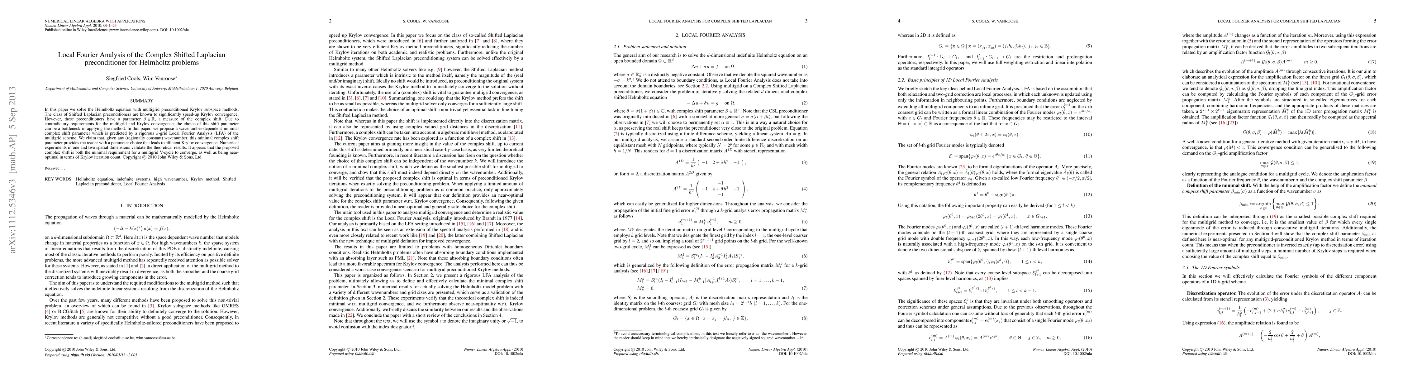 Development of a novel Local Fourier Analysis method for preconditioning complex shifted Laplace operators, enabling efficient and accurate solutions for scientific computing applications.