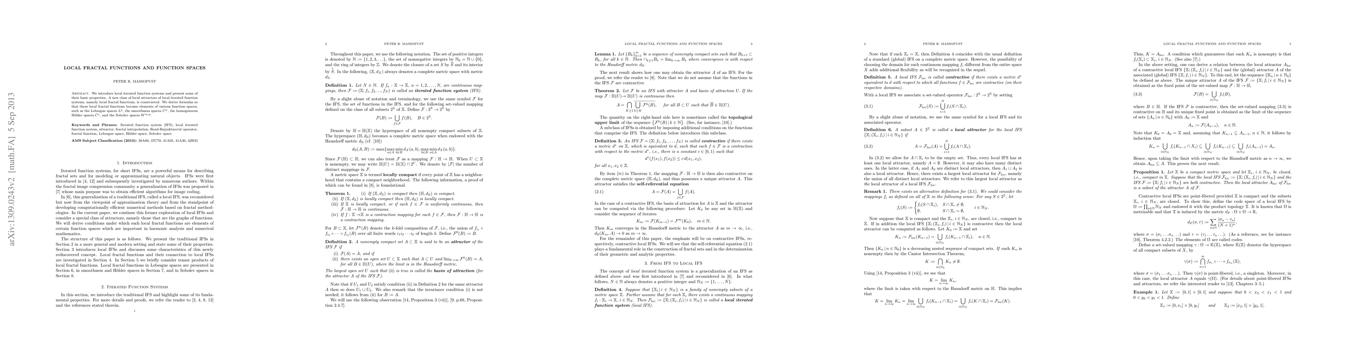 We introduce local iterated function systems and present some of their basic properties. A new class of local attractors of local iterated function systems, namely local fractal functions, is constructed. We derive formulas so that these local fractal functions become elements of various function spaces, such as the Lebesgue spaces $L^p$, the smoothness spaces $C^n$, the homogeneous H\"older spaces $\dot{C}^s$, and the Sobolev spaces $W^{m,p}$.