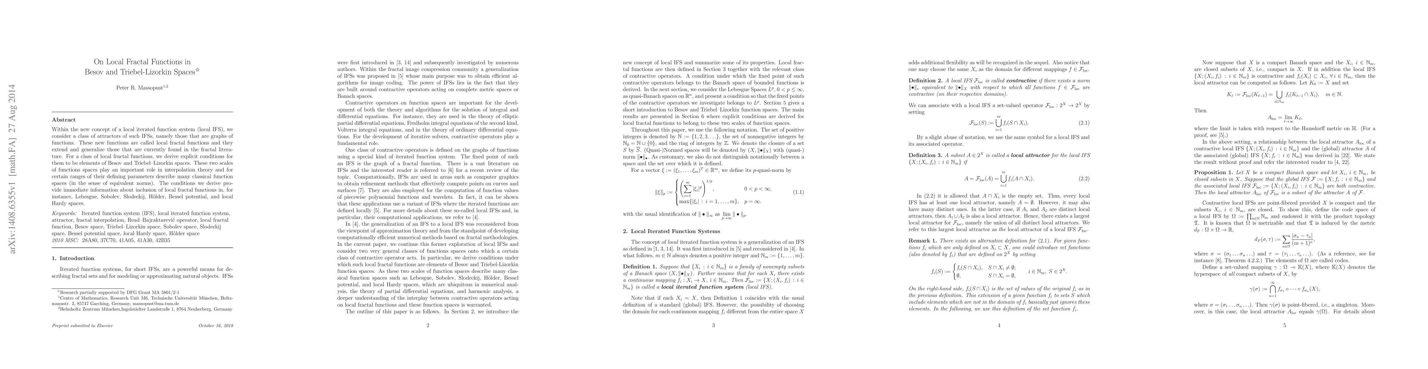 This paper introduces local fractal functions arising from local iterated function systems and establishes conditions for their membership in Besov and Triebel-Lizorkin spaces, providing insights into their inclusion in various classical function spaces.