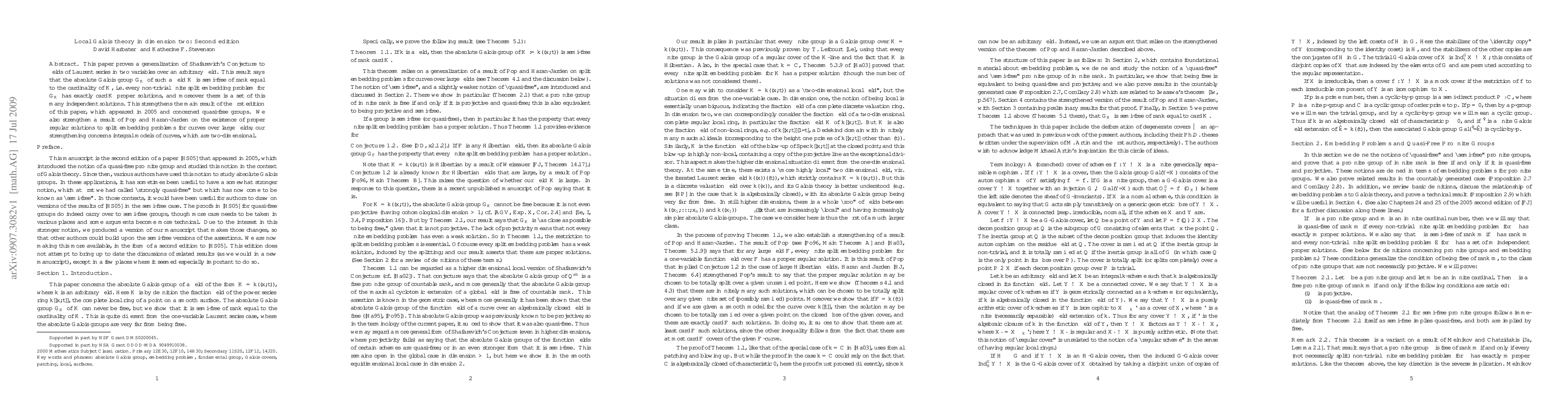 We prove a generalization of Shafarevich's Conjecture for fields of Laurent series in two variables over an arbitrary field. While not projective, the absolute Galois group of such a field is shown to be semi-free. We also show that the function field of a smooth projective curve over a large field has semi-free absolute Galois group. In the first edition of this paper it was shown that these groups are quasi-free, which is weaker.