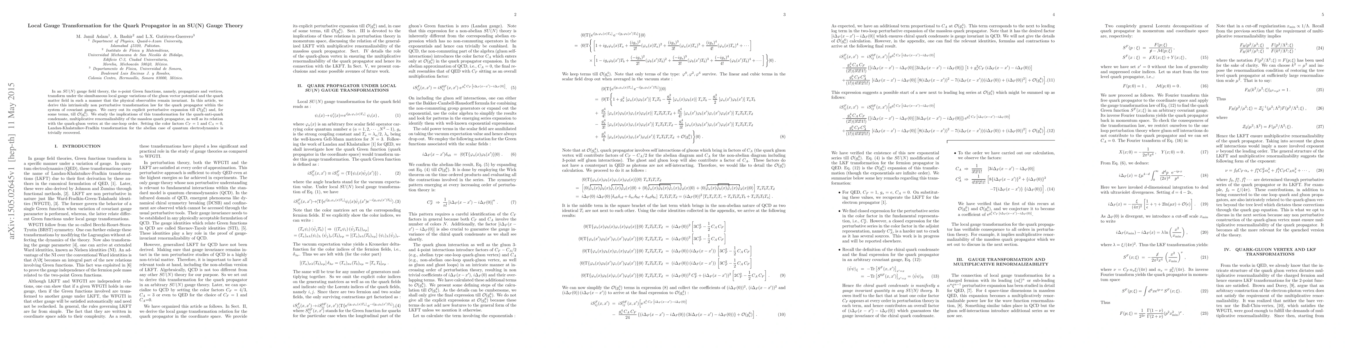This paper derives the non-perturbative transformation law for the quark propagator under local gauge variations in an SU(N) gauge theory, performing an explicit perturbative expansion up to O(g_s^8). It discusses implications for the quark-anti-quark condensate and the massless quark propagator's multiplicative renormalizability.