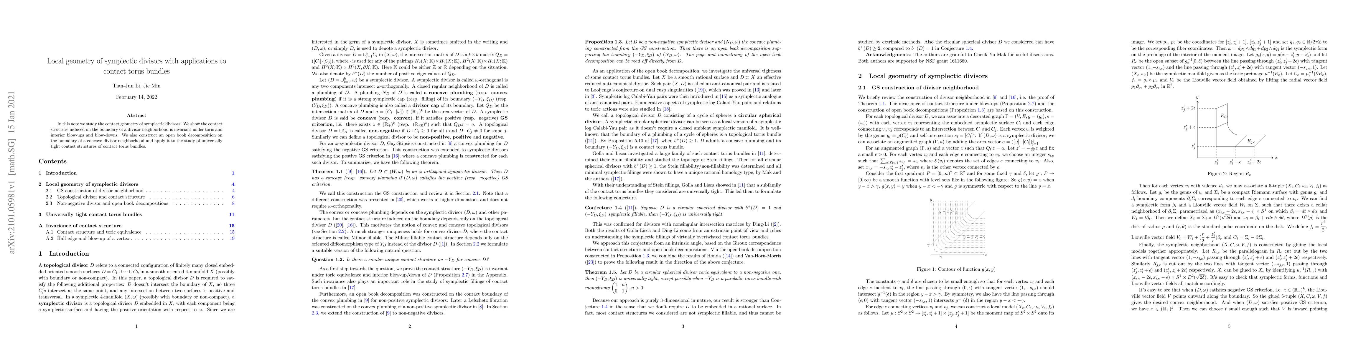 This paper investigates the contact geometry of symplectic divisors, demonstrating that the induced contact structure on the boundary remains invariant under toric transformations. It constructs an open book decomposition for concave divisor neighborhoods and applies it to analyze universally tight contact structures in contact torus bundles.