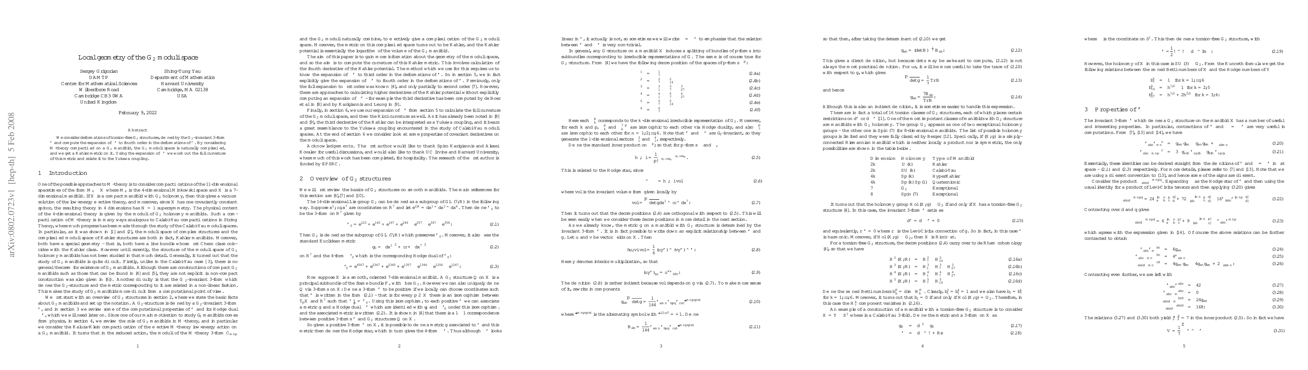 This paper investigates the local geometry of the G2 moduli space by computing the expansion of the Hodge star of the G2-invariant 3-form to fourth order in deformations. It derives a complexified Kähler metric on the moduli space and relates its curvature to the Yukawa coupling through M-theory compactification on a G2 manifold.
