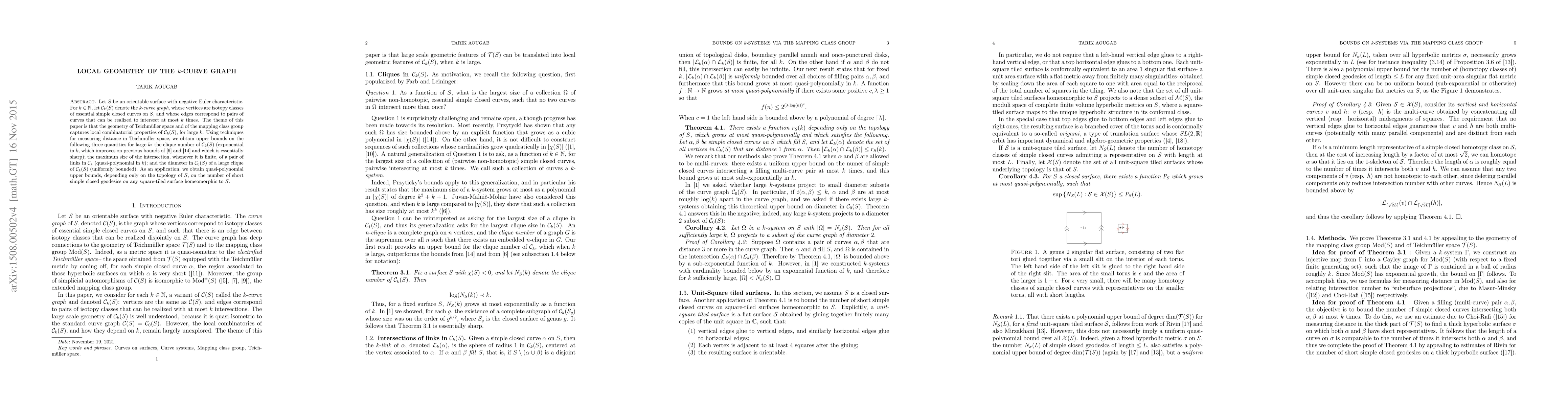 This work provides insights into the local combinatorial properties of the k-curve graph, which can be applied to understand the geometry of Teichmüller space and mapping class groups. It also yields quasi-polynomial bounds on the number of short simple closed geodesics on square-tiled surfaces homeomorphic to S.