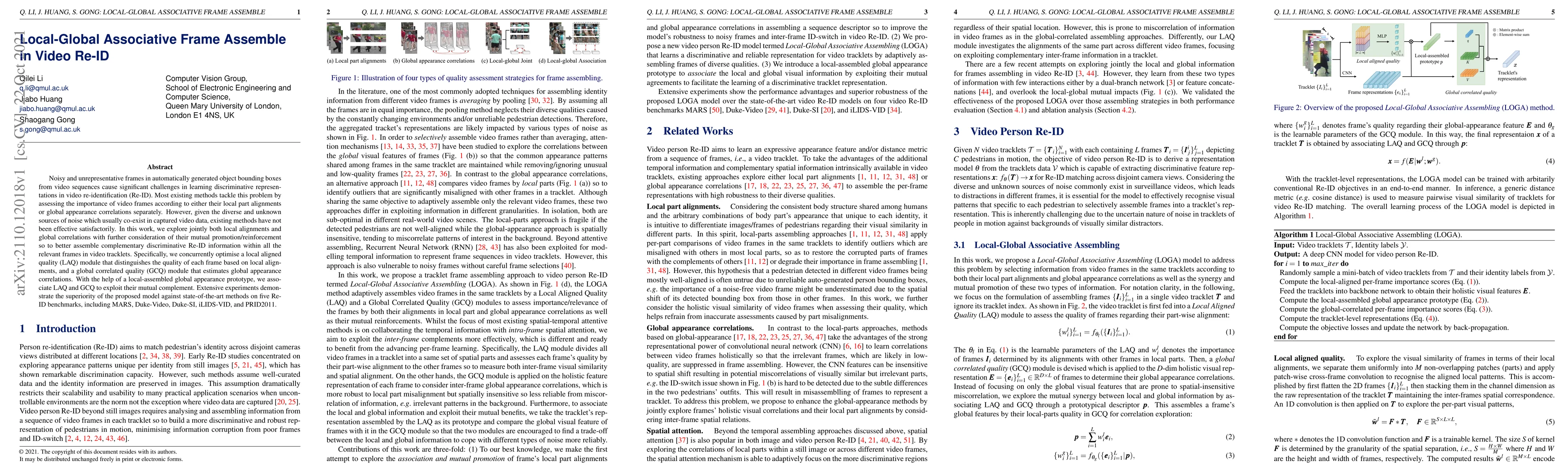 This research paper proposes a new approach to video re-identification (Re-ID) that jointly considers local alignments and global appearance correlations to improve the accuracy of Re-ID models. The proposed method outperforms state-of-the-art methods on five Re-ID benchmarks.