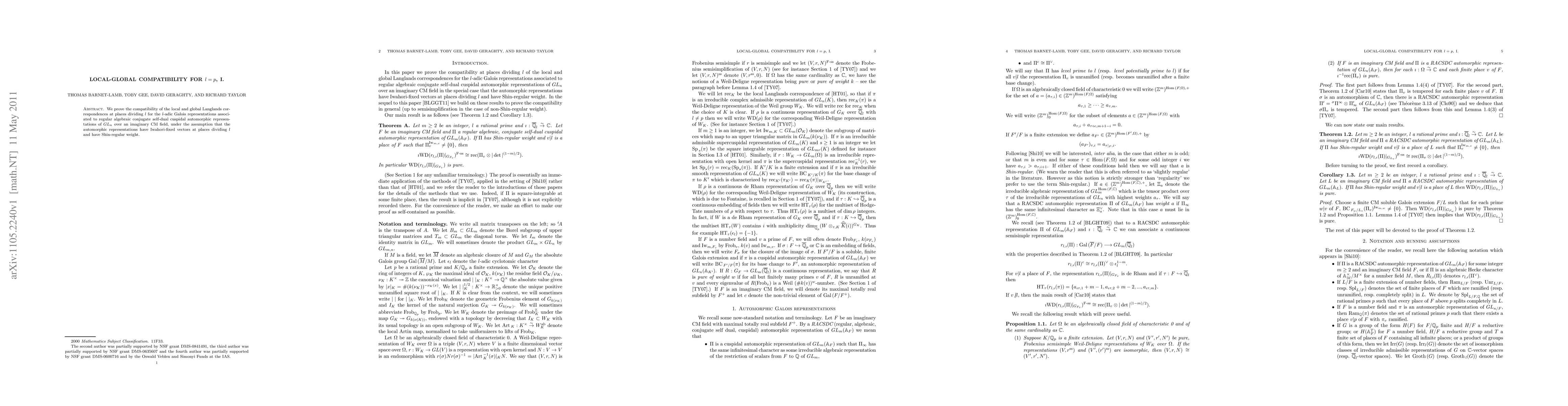We prove the compatibility of the local and global Langlands correspondences at places dividing l for the l-adic Galois representations associated to regular algebraic conjugate self-dual cuspidal automorphic representations of GL_n over an imaginary CM field, under the assumption that the automorphic representations have Iwahori-fixed vectors at places dividing l and have Shin-regular weight.