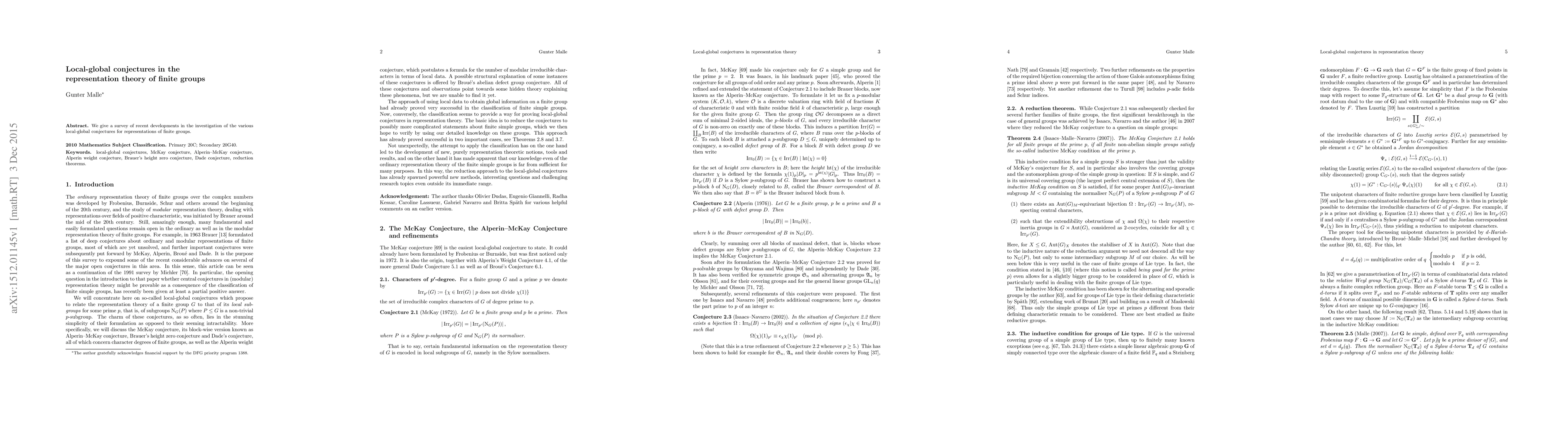 Summary: This paper surveys recent advancements in understanding local-global conjectures related to the representations of finite groups, highlighting significant progress and ongoing challenges in the field.