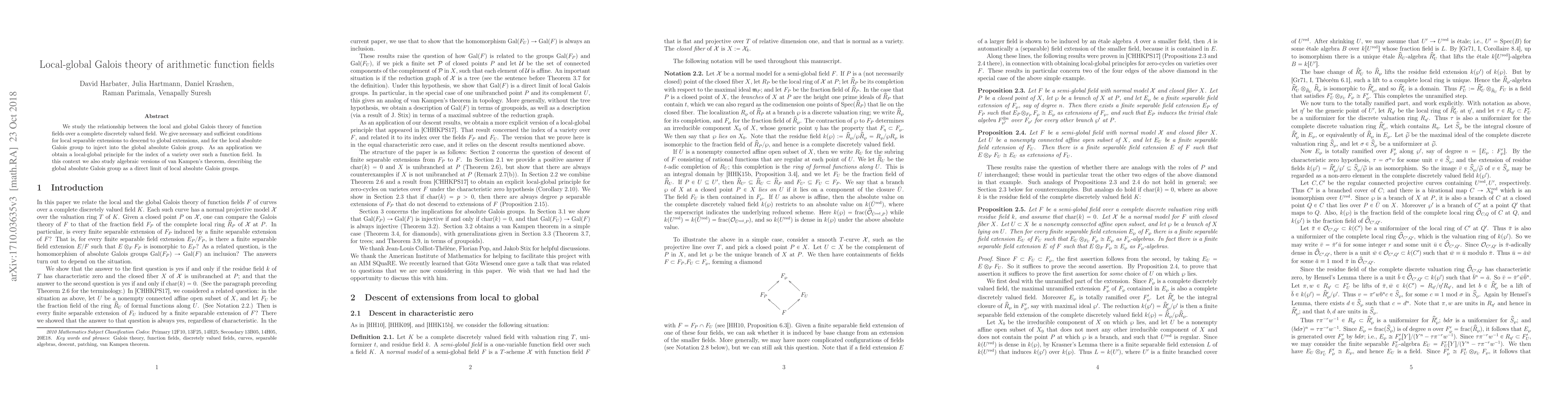 The paper studies the relationship between local and global Galois theory in function fields over a complete discretely valued field, providing necessary and sufficient conditions for extensions to descend and a local-global principle for the index of a variety.