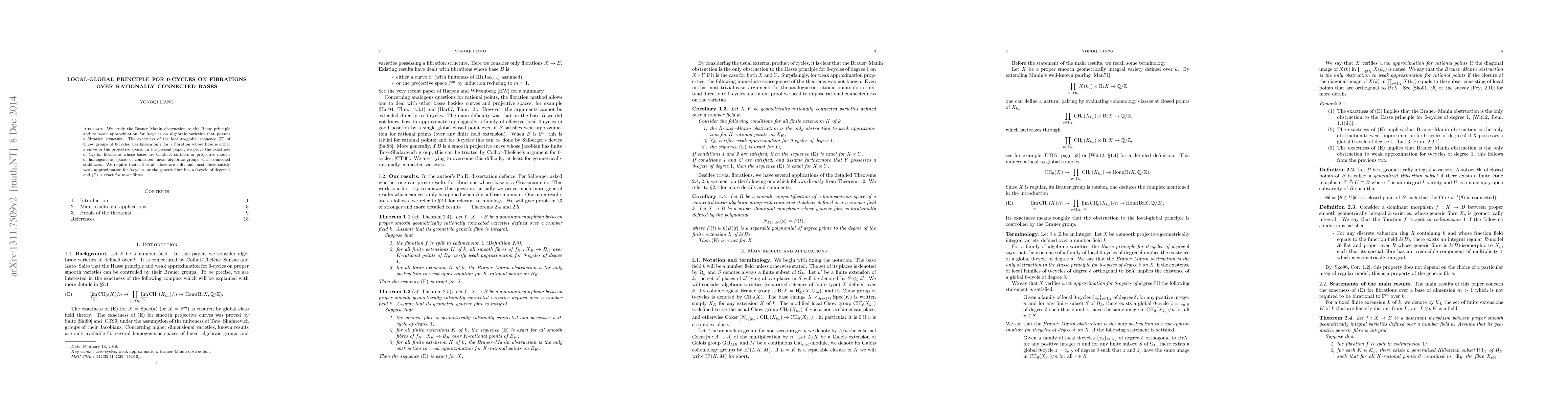 This paper proves the exactness of the local-to-global sequence $(E)$ for Chow groups of 0-cycles on fibrations over rationally connected bases, specifically for Ch\^{a}telet surfaces and projective models of homogeneous spaces. The results require either all fibres to be split or the generic fibre to have a 0-cycle of degree 1.