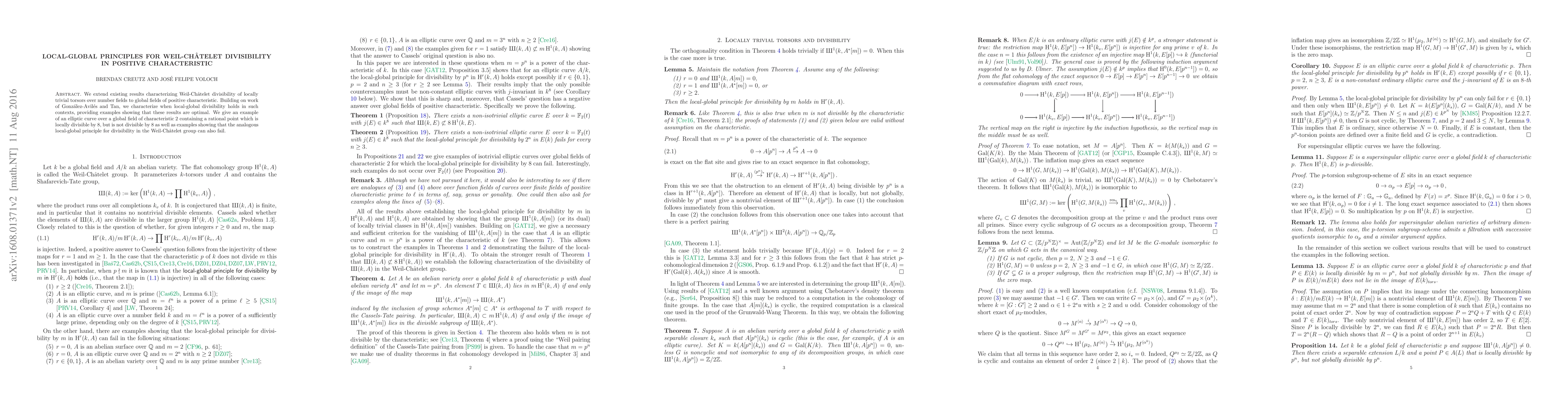 This paper extends the characterization of Weil-Châtelet divisibility for locally trivial torsors over number fields to global fields of positive characteristic, providing optimal examples that demonstrate the failure of local-global divisibility principles in certain cases.
