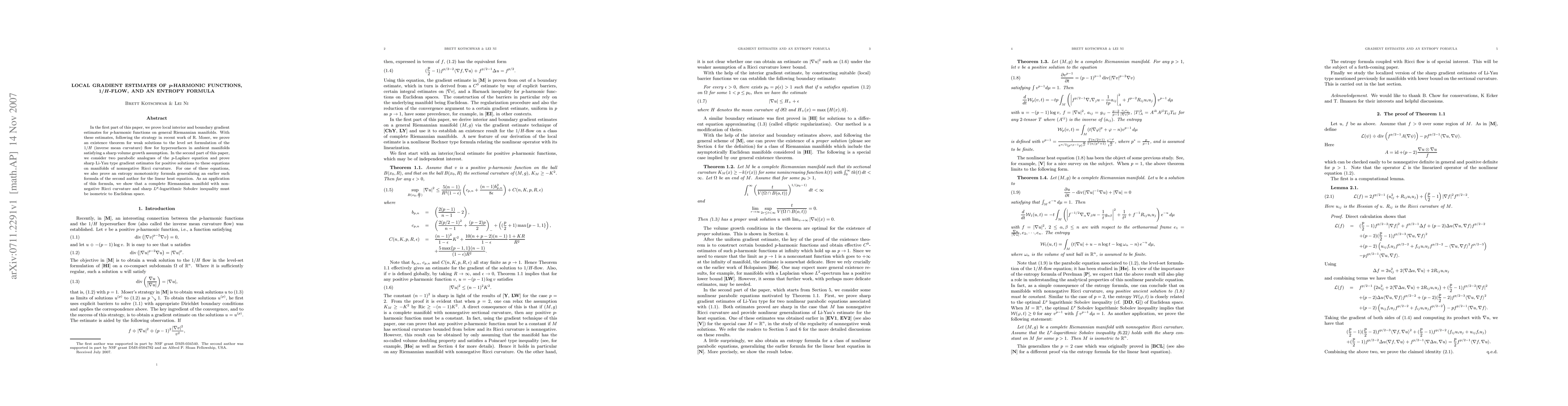 This paper proves local gradient estimates for p-harmonic functions and uses them to establish existence for the 1/H flow under volume growth conditions. It also investigates parabolic analogues of the p-Laplace equation, proving sharp gradient estimates and an entropy formula, which implies that certain manifolds with non-negative Ricci curvature are isometric to Euclidean space.