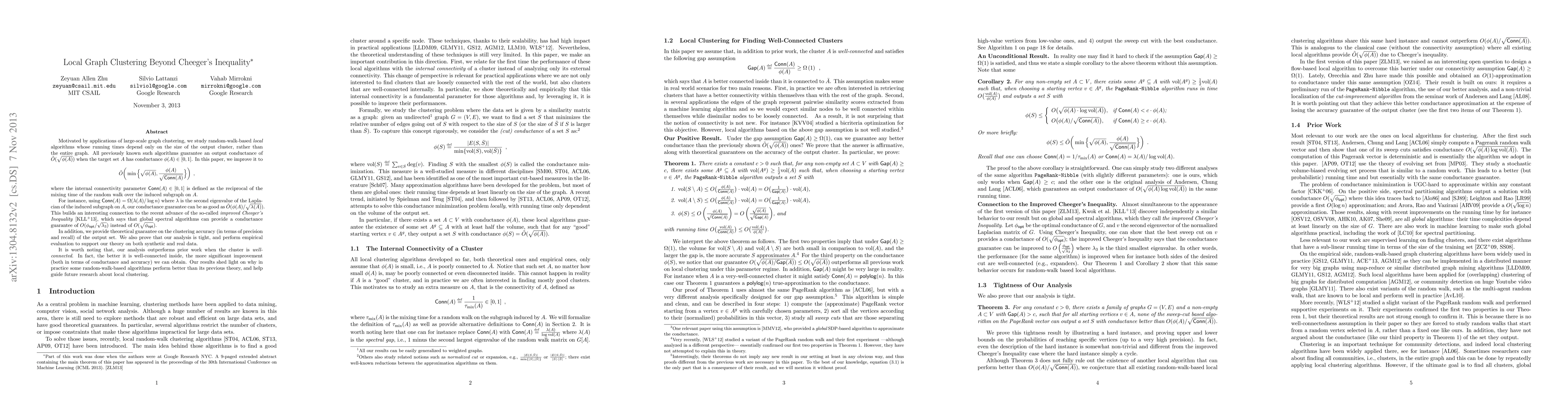 This paper improves upon previous graph clustering algorithms to achieve a faster running time that scales with the size of the output cluster, leading to better performance on well-connected clusters.