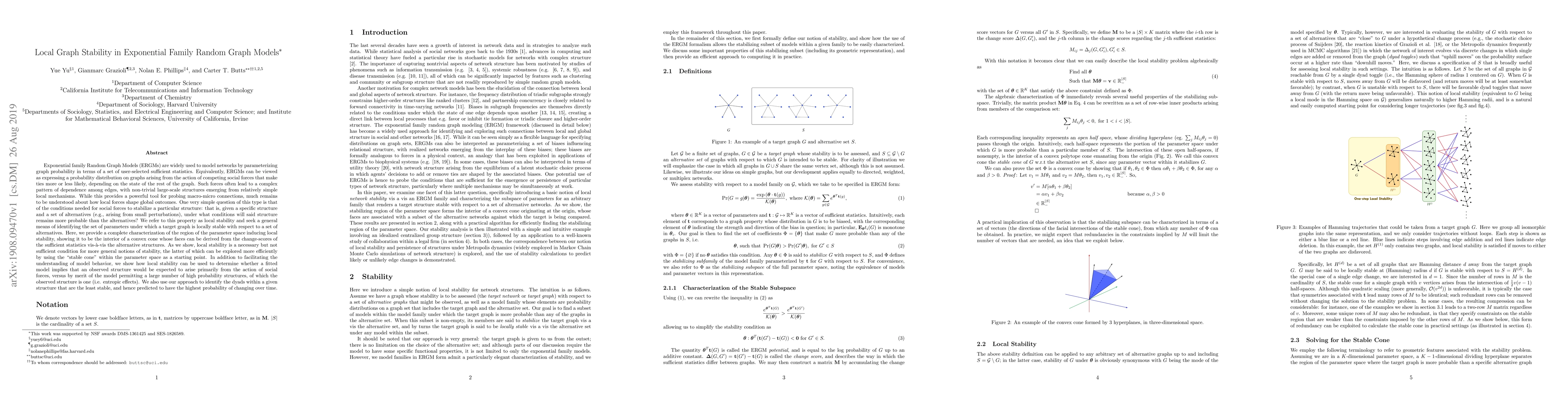 Exponential family Random Graph Models (ERGMs) can be viewed as expressing a probability distribution on graphs arising from the action of competing social forces that make ties more or less likely, depending on the state of the rest of the graph. Such forces often lead to a complex pattern of dependence among edges, with non-trivial large-scale structures emerging from relatively simple local mechanisms. While this provides a powerful tool for probing macro-micro connections, much remains to be understood about how local forces shape global outcomes. One simple question of this type is that of the conditions needed for social forces to stabilize a particular structure. We refer to this property as local stability and seek a general means of identifying the set of parameters under which a target graph is locally stable with respect to a set of alternatives. Here, we provide a complete characterization of the region of the parameter space inducing local stability, showing it to be the interior of a convex cone whose faces can be derived from the change-scores of the sufficient statistics vis-a-vis the alternative structures. As we show, local stability is a necessary but not sufficient condition for more general notions of stability, the latter of which can be explored more efficiently by using the ``stable cone'' within the parameter space as a starting point. In addition, we show how local stability can be used to determine whether a fitted model implies that an observed structure would be expected to arise primarily from the action of social forces, versus by merit of the model permitting a large number of high probability structures, of which the observed structure is one. We also use our approach to identify the dyads within a given structure that are the least stable, and hence predicted to have the highest probability of changing over time.