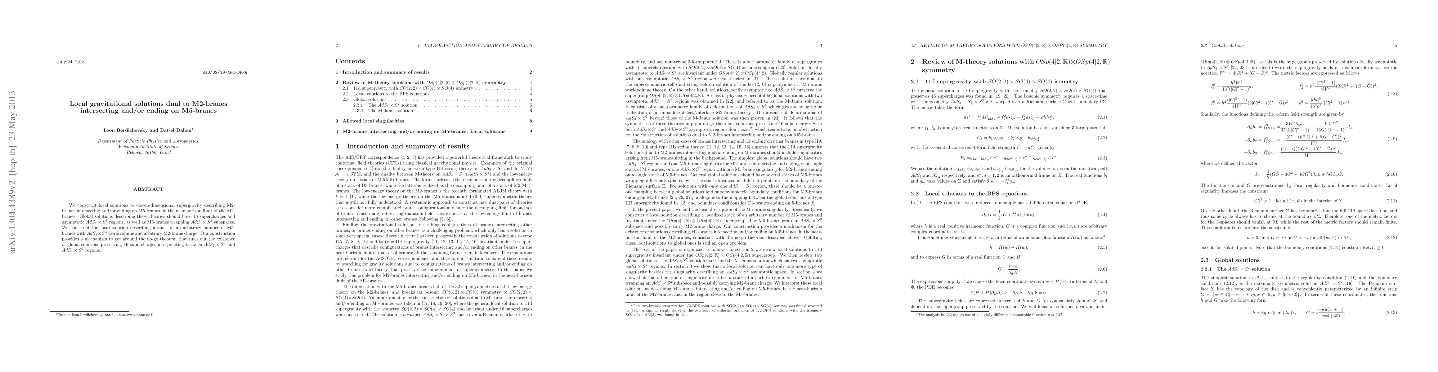 This paper constructs local solutions to eleven-dimensional supergravity for M2-branes intersecting and ending on M5-branes, bypassing the no-go theorem that prevents global solutions with 16 supercharges. The solutions maintain asymptotic AdS_4 x S^7 regions and wrap AdS_3 x S^3 subspaces.