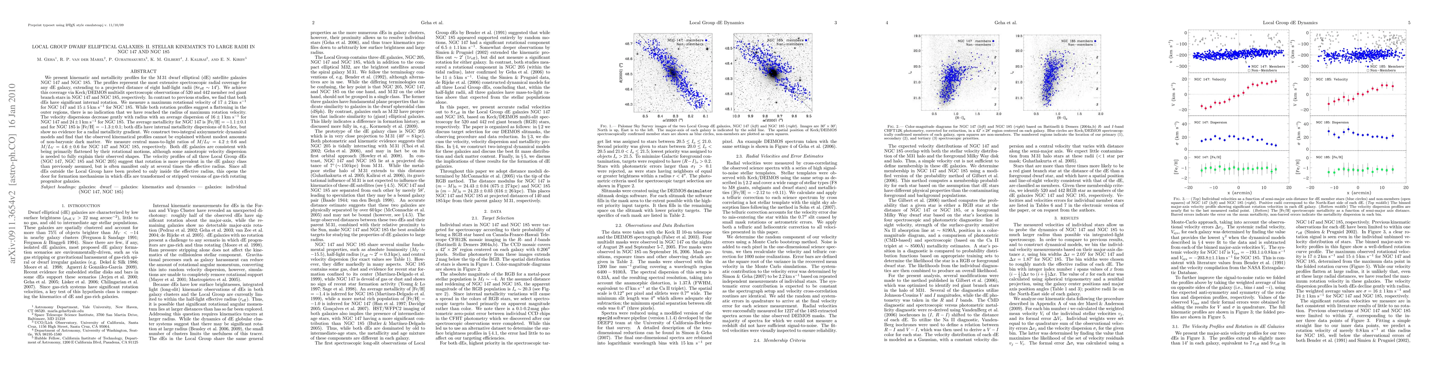 This paper investigates the stellar kinematics and metallicity profiles of NGC 147 and NGC 185, revealing significant internal rotation and high rotational velocities, challenging previous assumptions about dwarf elliptical galaxies. The study suggests the presence of dark matter and indicates that rotation may be more common in dEs than previously thought.