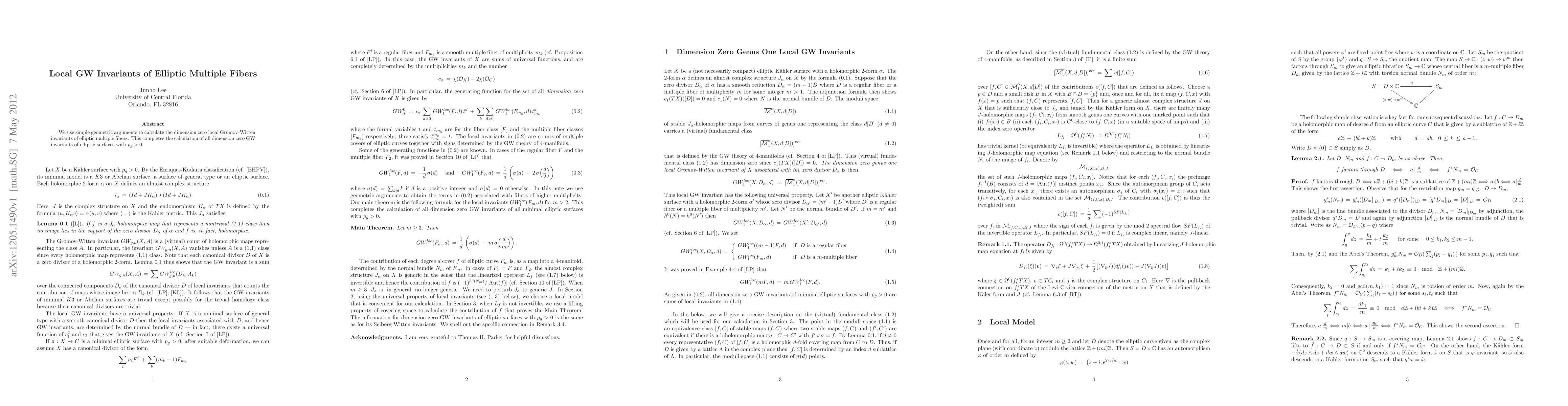Summary: This paper calculates dimension zero local Gromov-Witten invariants for elliptic multiple fibers using geometric arguments, thus completing the computation for all dimension zero GW invariants in elliptic surfaces with positive $p_g$.