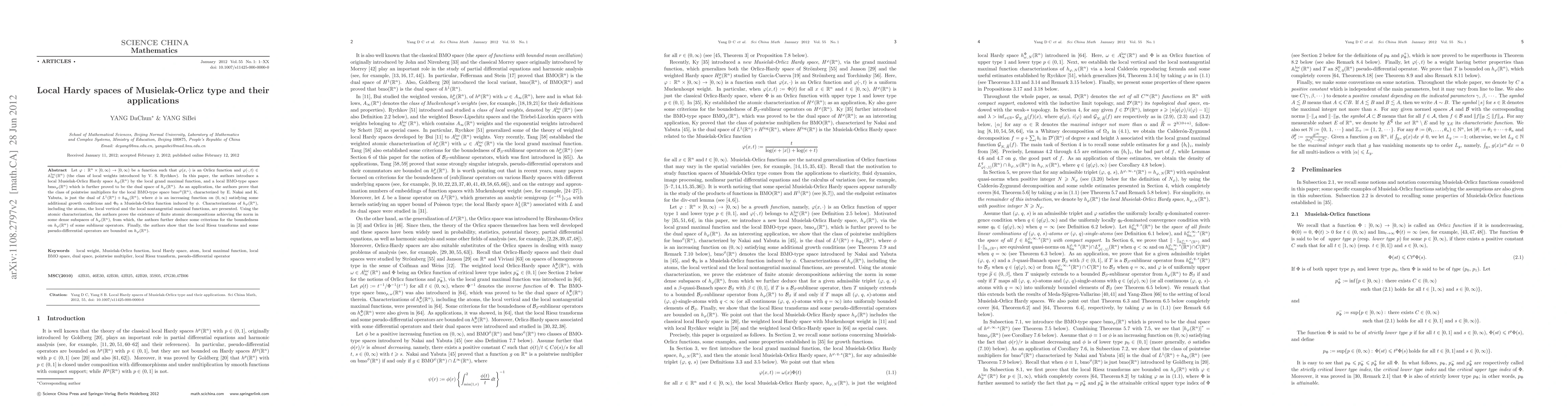 Let $\phi: \mathbb{R}^n\times[0,\fz)\rightarrow[0,\fz)$ be a function such that $\phi(x,\cdot)$ is an Orlicz function and $\phi(\cdot,t)\in A^{\mathop\mathrm{loc}}_{\infty}(\mathbb{R}^n)$ (the class of local weights introduced by V. S. Rychkov). In this paper, the authors introduce a local Hardy space $h_{\phi}(\mathbb{R}^n)$ of Musielak-Orlicz type by the local grand maximal function, and a local $\mathop\mathrm{BMO}$-type space $\mathop\mathrm{bmo}_{\phi}(\mathbb{R}^n)$ which is further proved to be the dual space of $h_{\phi}(\mathbb{R}^n)$. As an application, the authors prove that the class of pointwise multipliers for the local $\mathop\mathrm{BMO}$-type space $\mathop\mathrm{bmo}^{\phi}(\mathbb{R}^n)$, characterized by E. Nakai and K. Yabuta, is just the dual of $L^1(\rn)+h_{\Phi_0}(\mathbb{R}^n)$, where $\phi$ is an increasing function on $(0,\infty)$ satisfying some additional growth conditions and $\Phi_0$ a Musielak-Orlicz function induced by $\phi$. Characterizations of $h_{\phi}(\mathbb{R}^n)$, including the atoms, the local vertical and the local nontangential maximal functions, are presented. Using the atomic characterization, the authors prove the existence of finite atomic decompositions achieving the norm in some dense subspaces of $h_{\phi}(\mathbb{R}^n)$, from which, the authors further deduce some criterions for the boundedness on $h_{\phi}(\mathbb{R}^n)$ of some sublinear operators. Finally, the authors show that the local Riesz transforms and some pseudo-differential operators are bounded on $h_{\phi}(\mathbb{R}^n)$.