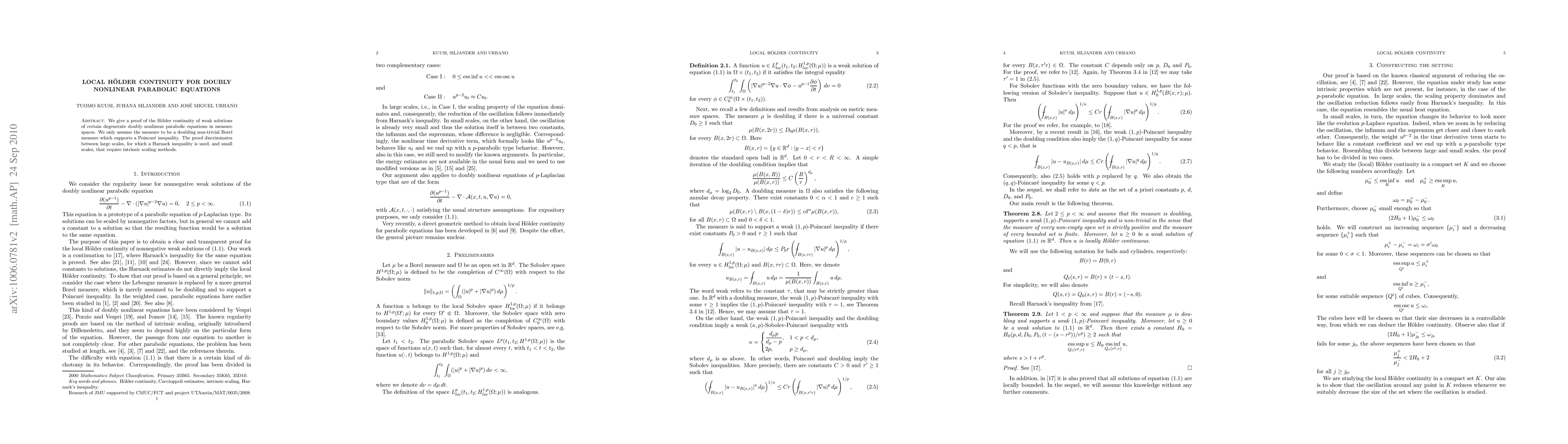 We give a proof of the H\"older continuity of weak solutions of certain degenerate doubly nonlinear parabolic equations in measure spaces. We only assume the measure to be a doubling non-trivial Borel measure which supports a Poincar\'e inequality. The proof discriminates between large scales, for which a Harnack inequality is used, and small scales, that require intrinsic scaling methods.