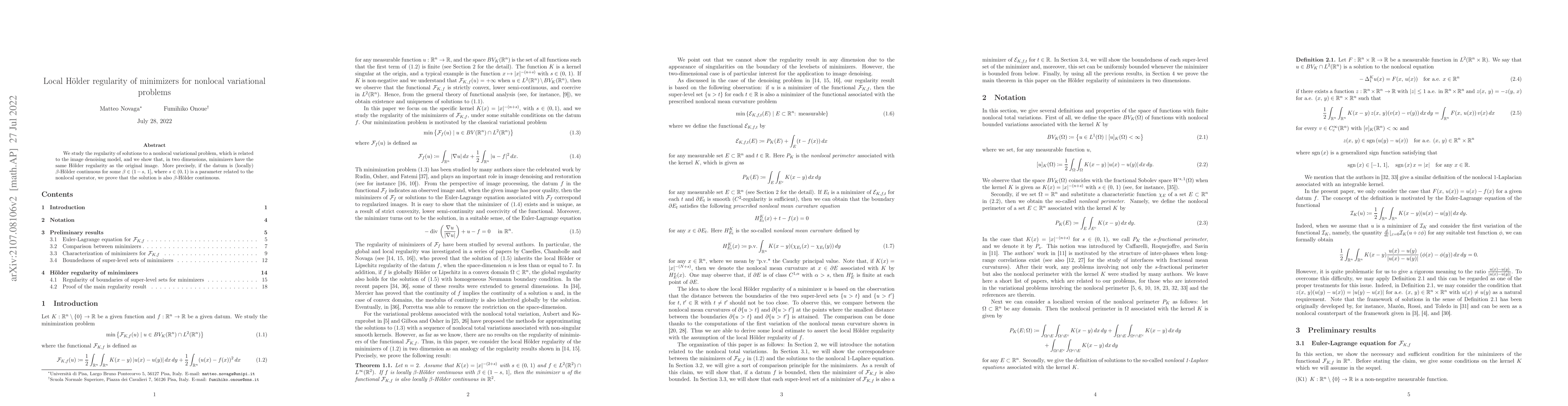This paper investigates the regularity of minimizers in nonlocal variational problems, specifically showing that in two dimensions, the solutions maintain the same H\"older continuity as the original image. The authors prove that if the input data is $\beta$-H\"older continuous for $\beta \in (1-s,\,1]$, the solution will also exhibit $\beta$-H\"older continuity.