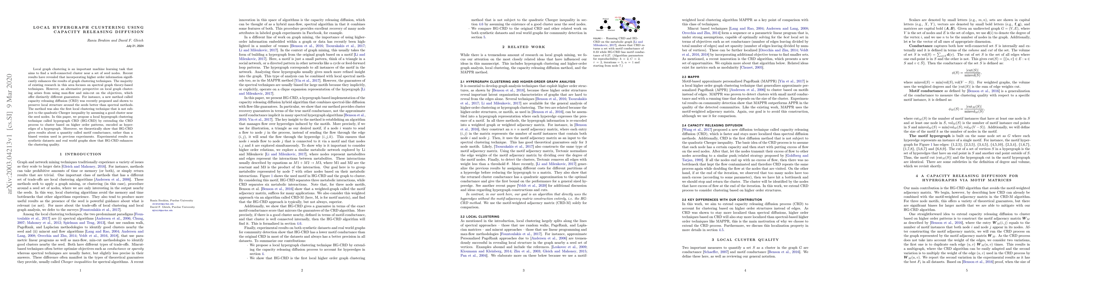 This paper proposes a local hypergraph clustering method called hypergraph CRD (HG-CRD) by extending the capacity releasing diffusion (CRD) process to higher-order patterns. HG-CRD improves clustering quality by preserving local structure and offering better guarantees than spectral methods.