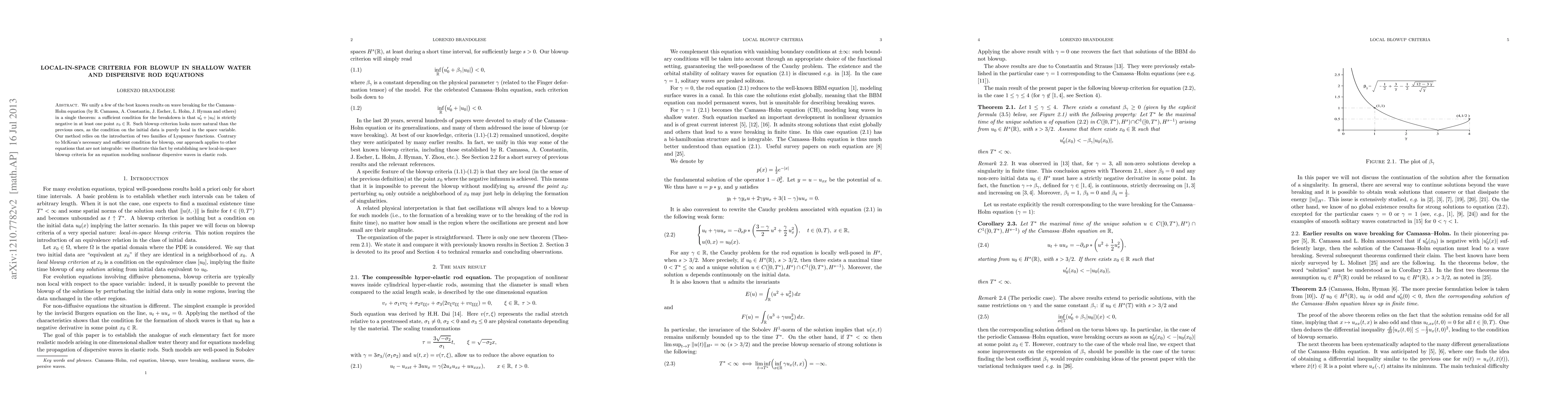 We unify a few of the best known results on wave breaking for the Camassa--Holm equation (by R. Camassa, A. Constantin, J. Escher, L. Holm, J. Hyman and others) in a single theorem: a sufficient condition for the breakdown is that $u_0'+|u_0|$ is strictly negative in at least one point $x_0$ of the real line. Such blowup criterion looks more natural than the previous ones, as the condition on the initial data is purely local in the space variable. Our method relies on the introduction of two families of Lyapunov functions. Contrary to McKean's necessary and sufficient condition for blowup, our approach applies to other equations that are not integrable: we illustrate this fact by establishing new local-in-space blowup criteria for an equation modeling nonlinear dispersive waves in elastic rods.