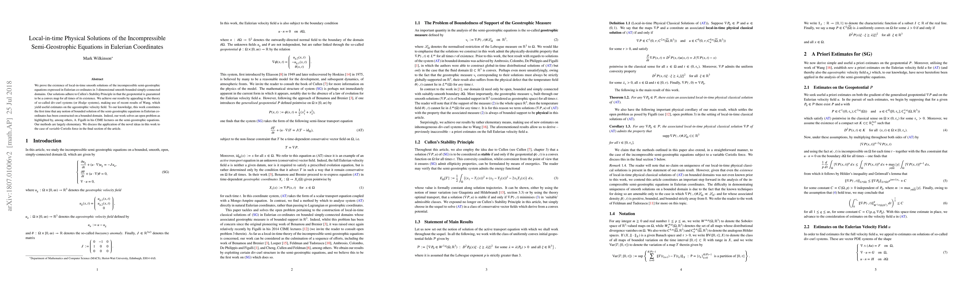 This paper establishes the existence of local-in-time smooth solutions for the incompressible semi-geostrophic equations in Eulerian coordinates within bounded domains, adhering to Cullen's Stability Principle. The authors utilize div-curl systems and recent results to achieve their results, solving an open problem in the field.