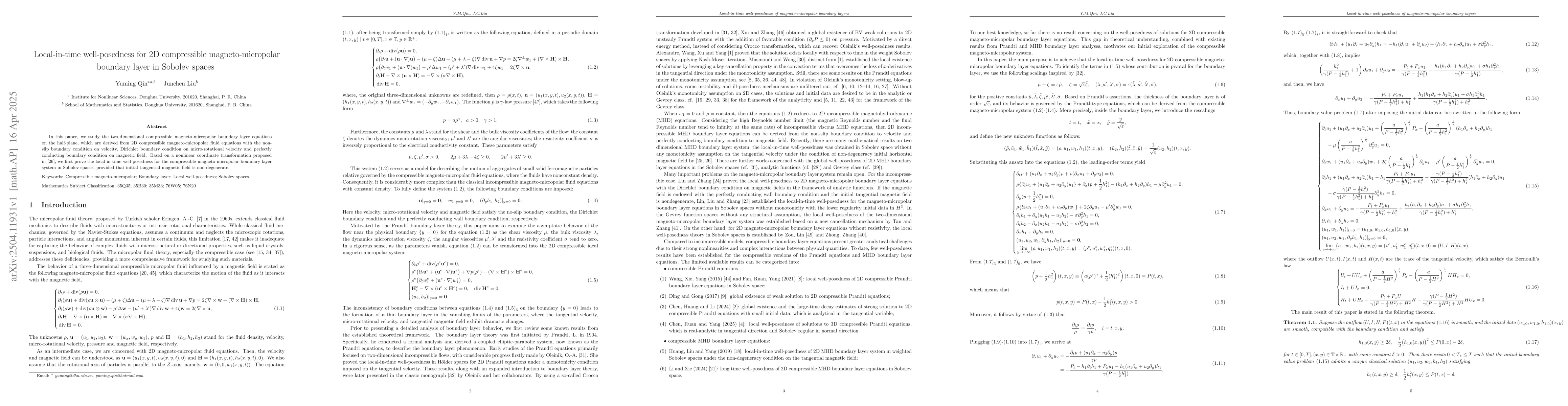 The paper presents a novel approach for proving local-in-time well-posedness using a nonlinear coordinate transformation, extending previous work to the compressible magneto-micropolar boundary layer equations.