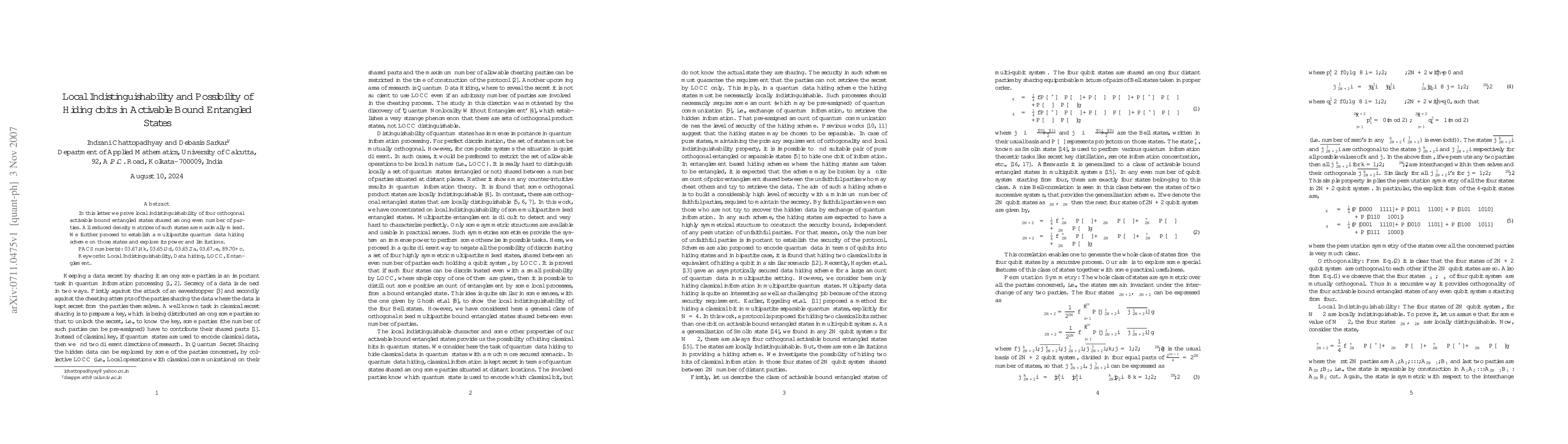 Researchers prove that certain bound entangled states can be made indistinguishable from each other when shared among an even number of parties, enabling secure quantum data hiding.