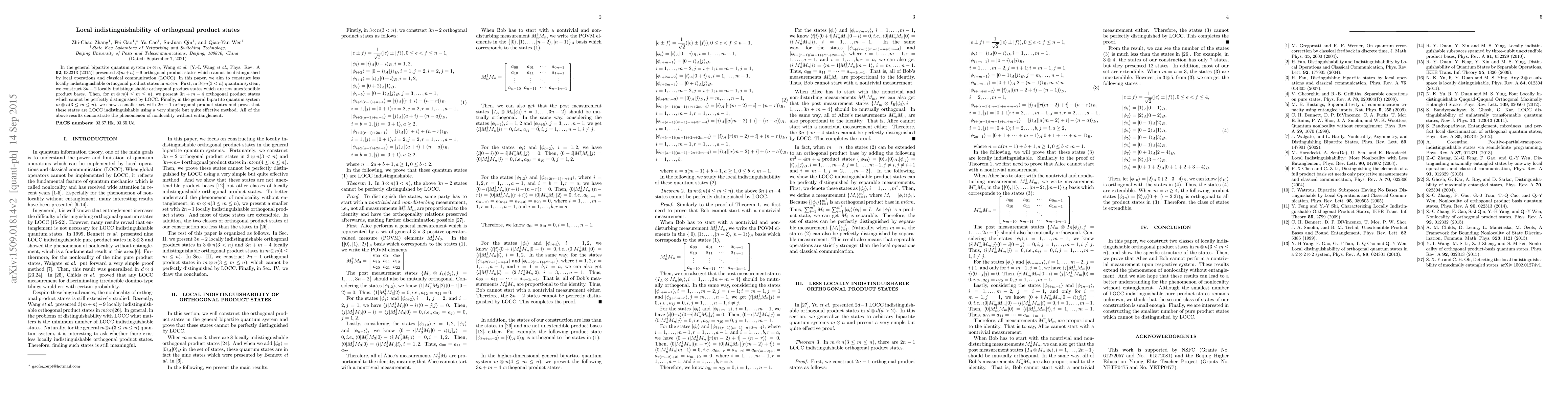 This paper constructs fewer locally indistinguishable orthogonal product states in various bipartite quantum systems than previously known, demonstrating nonlocality without entanglement. It presents $3n-2$ states in $3\otimes n$ systems, $3n+m-4$ in $m\otimes n$ for $4\leq m\leq n$, and $2n-1$ in general $m\otimes n$ systems, all of which cannot be distinguished by local operations and classical communication.