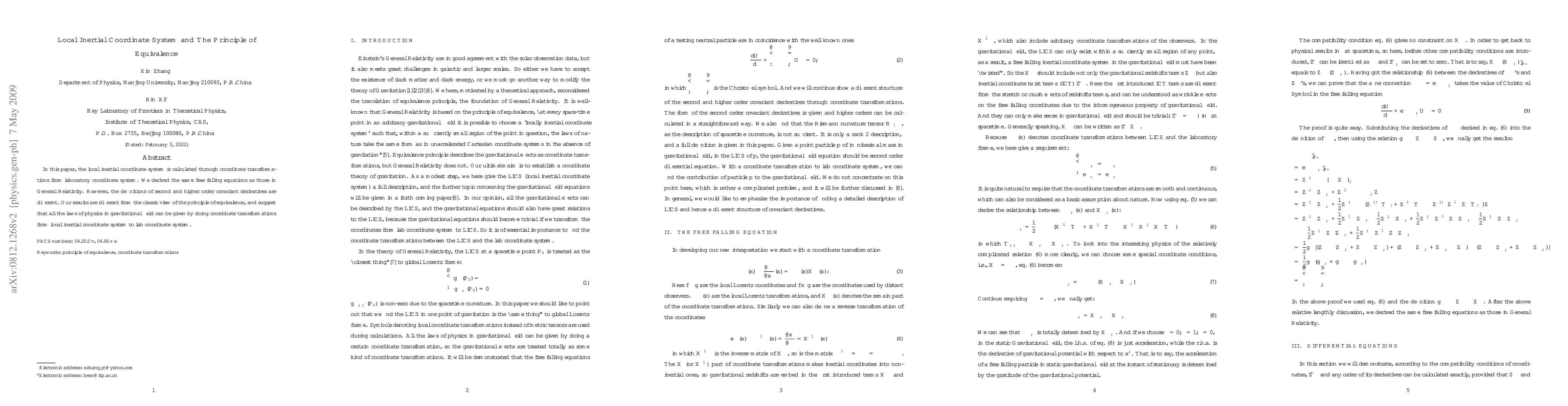 This paper derives the local inertial coordinate system via transformations from a laboratory coordinate system, showing equivalence to General Relativity's free-falling equations but with distinct definitions of higher-order covariant derivatives. It challenges the traditional principle of equivalence, proposing that all physical laws in a gravitational field can be expressed through coordinate transformations.