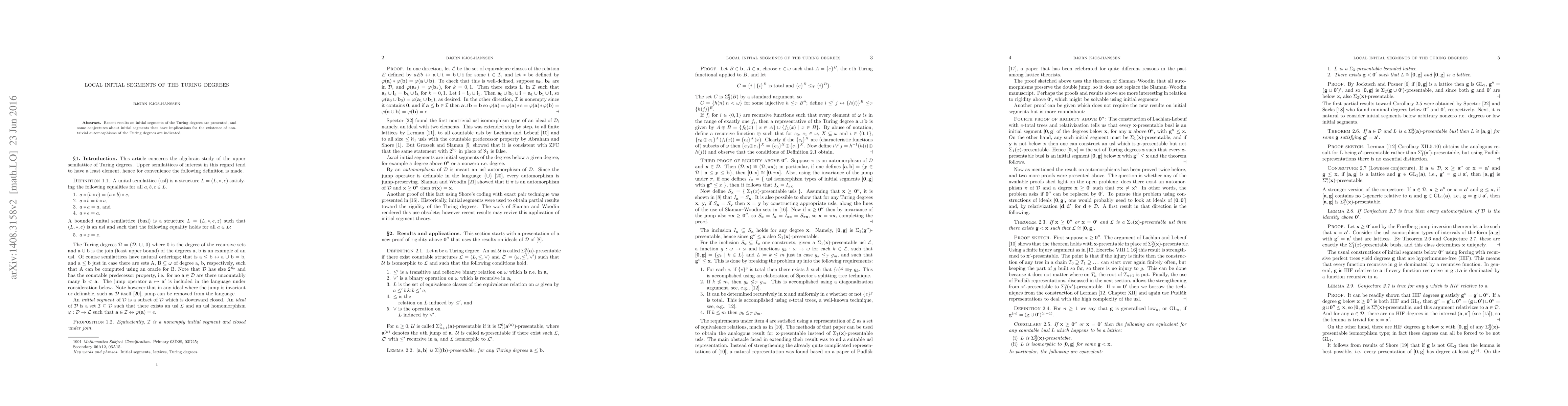 This paper discusses recent findings on the local initial segments of Turing degrees and explores conjectures that may affect the existence of non-trivial automorphisms within these segments. The study aims to deepen the understanding of the structure of Turing degrees.