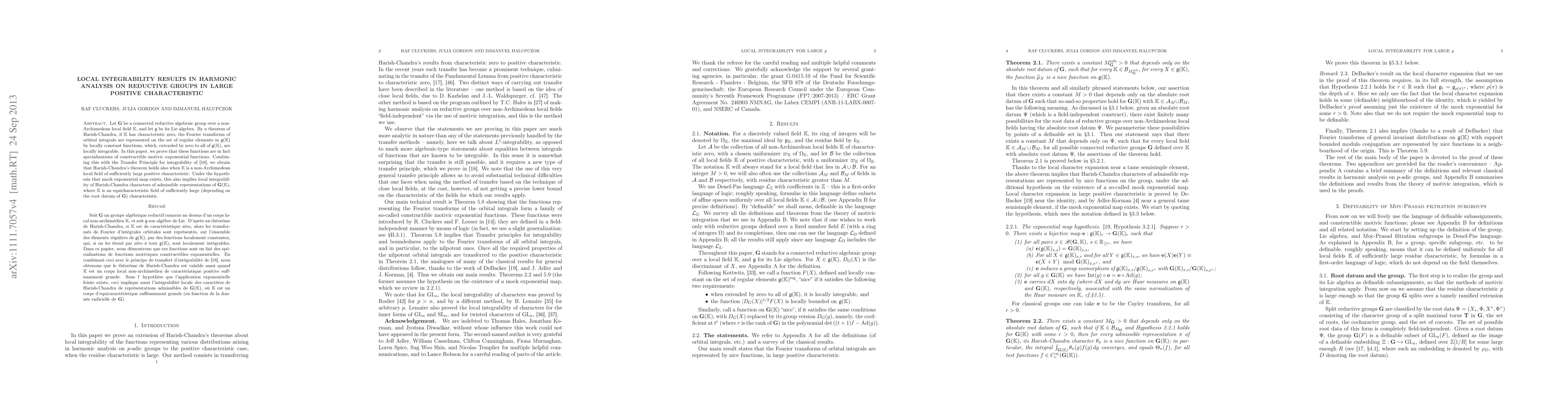 This paper proves that the Fourier transforms of orbital integrals in reductive algebraic groups over non-Archimedean local fields, even when the field has large positive characteristic, yield locally integrable functions, extending Harish-Chandra's theorem from characteristic zero to sufficiently large positive characteristic.