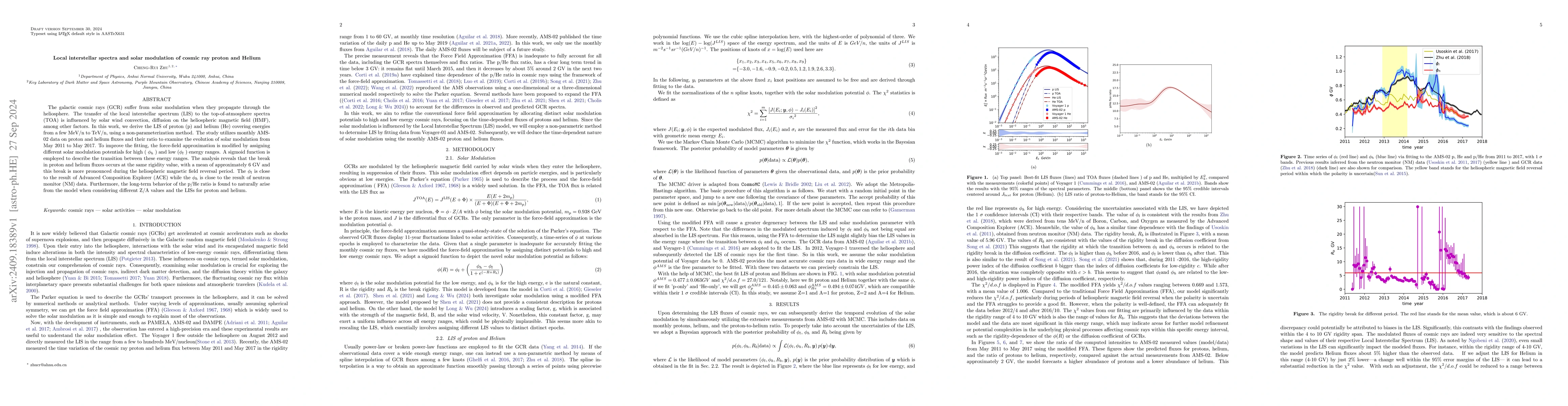 This study derives the local interstellar spectra (LIS) for cosmic ray protons and helium in the energy range from MeV/n to TeV/n using a non-parameterization method. It analyzes solar modulation effects from 2011 to 2017, showing a break in fluxes at around 6 GV rigidity, more pronounced during magnetic field reversals, and correlating modulation potentials with different energy ranges.