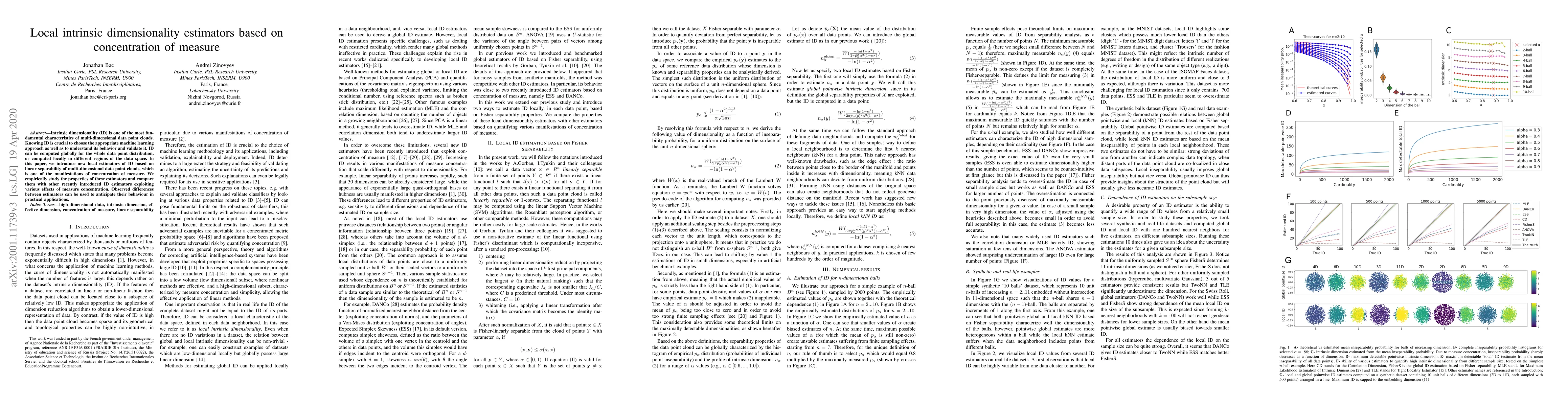 This paper introduces new local intrinsic dimensionality estimators based on the concentration of measure, focusing on the linear separability of multi-dimensional data point clouds. The authors empirically compare these estimators with other existing methods to analyze their practical applications and behavior.