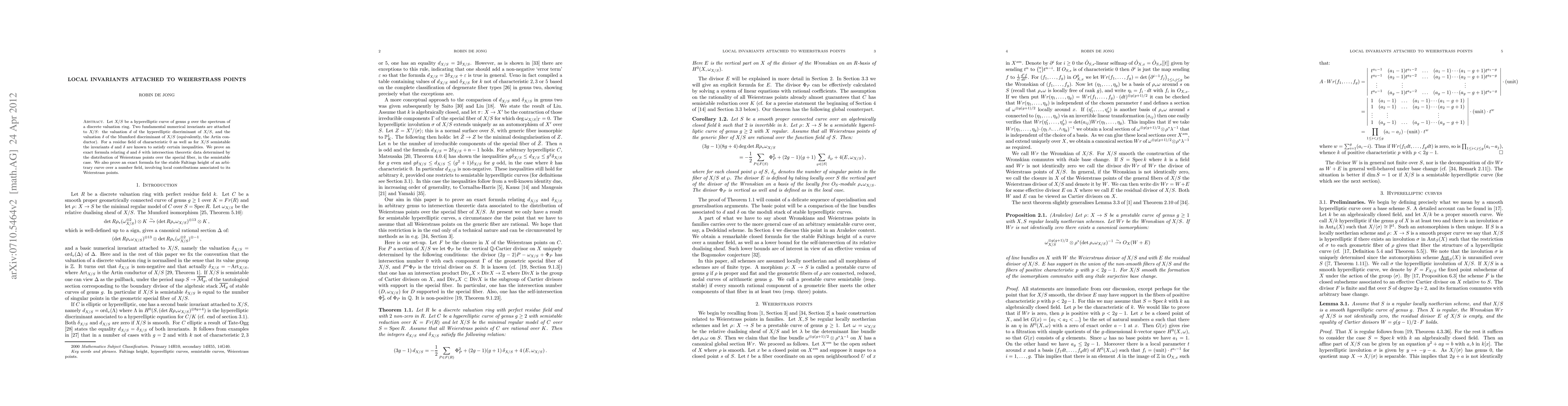 This paper establishes exact formulas relating Weierstrass point invariants to intersection data on hyperelliptic curves, providing new insights into the Faltings height of arbitrary curves over number fields.