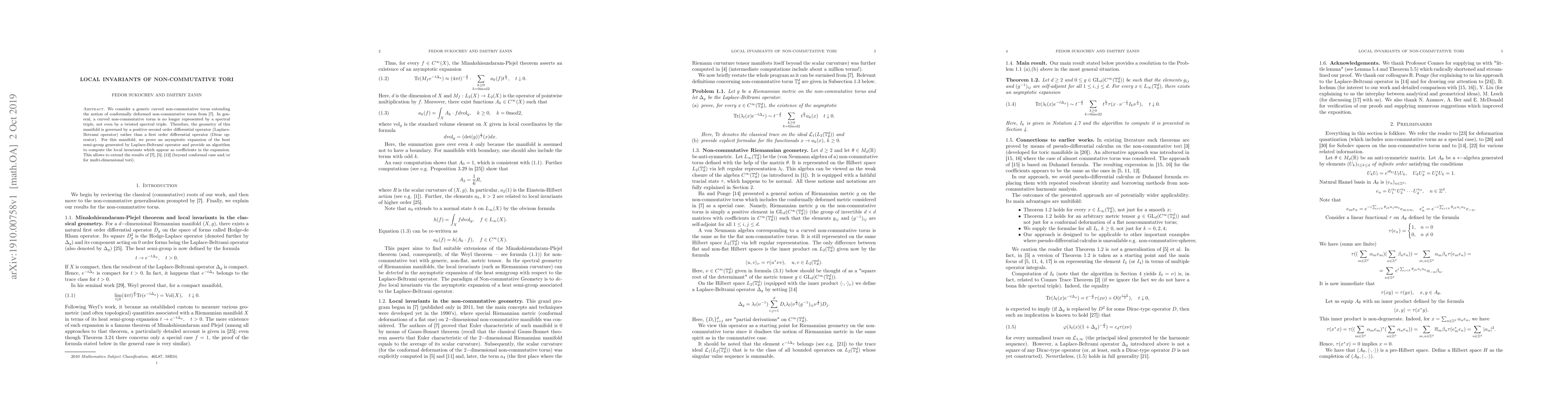 Researchers developed a new approach to analyze curved non-commutative tori, extending existing methods to include higher-order differential operators. They showed an asymptotic expansion of the heat semi-group and provided a method to compute local invariants for these manifolds.
