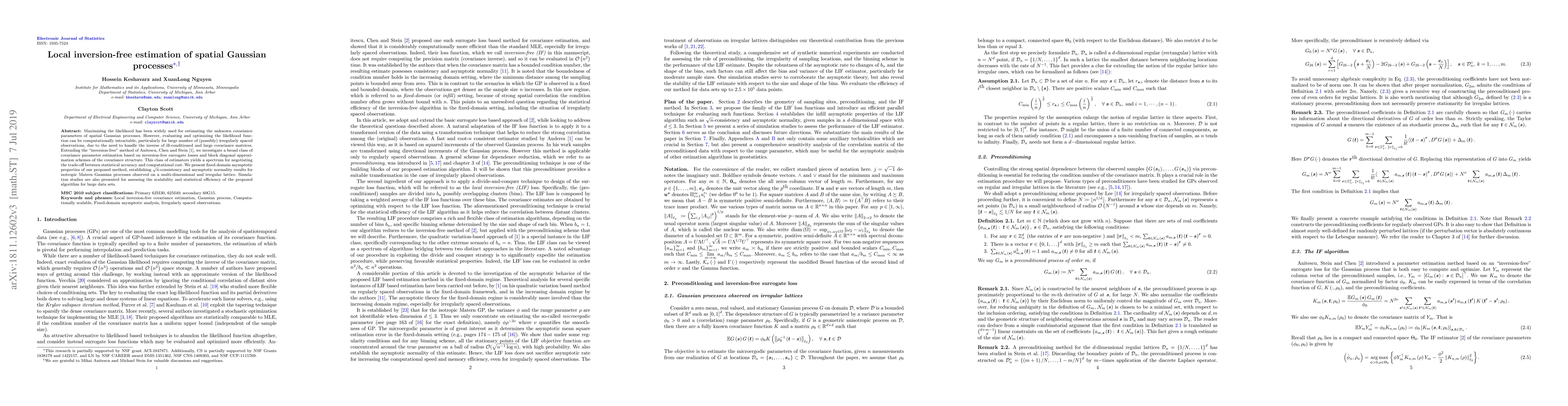 Maximizing the likelihood has been widely used for estimating the unknown covariance parameters of spatial Gaussian processes. However, evaluating and optimizing the likelihood function can be computationally intractable, particularly for large number of (possibly) irregularly spaced observations, due to the need to handle the inverse of ill-conditioned and large covariance matrices. Extending the "inversion-free" method of Anitescu, Chen and Stein \cite{anitescu2017inversion}, we investigate a broad class of covariance parameter estimators based on inversion-free surrogate losses and block diagonal approximation schemes of the covariance structure. This class of estimators yields a spectrum for negotiating the trade-off between statistical accuracy and computational cost. We present fixed-domain asymptotic properties of our proposed method, establishing $\sqrt{n}$-consistency and asymptotic normality results for isotropic Matern Gaussian processes observed on a multi-dimensional and irregular lattice. Simulation studies are also presented for assessing the scalability and statistical efficiency of the proposed algorithm for large data sets.