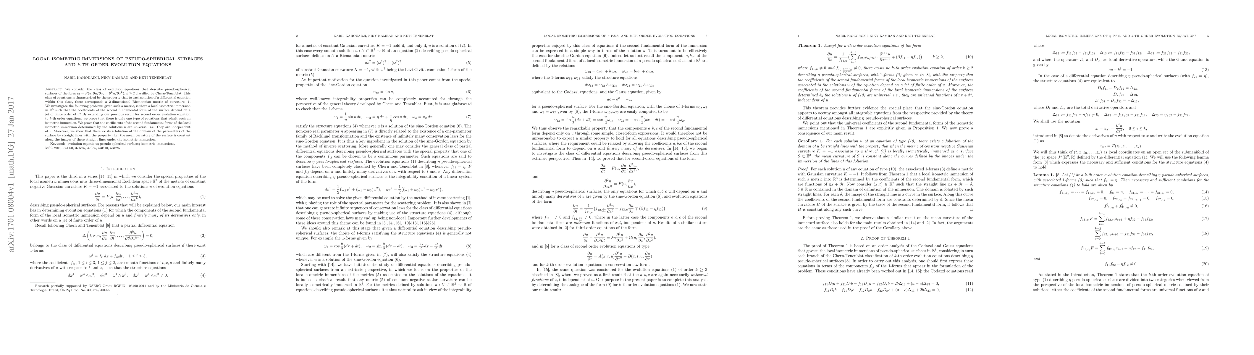 The paper investigates whether pseudo-spherical surfaces evolving according to k-th order equations can be immersed in 3D space with second fundamental form coefficients dependent on a finite-order jet of the evolution equation solution.