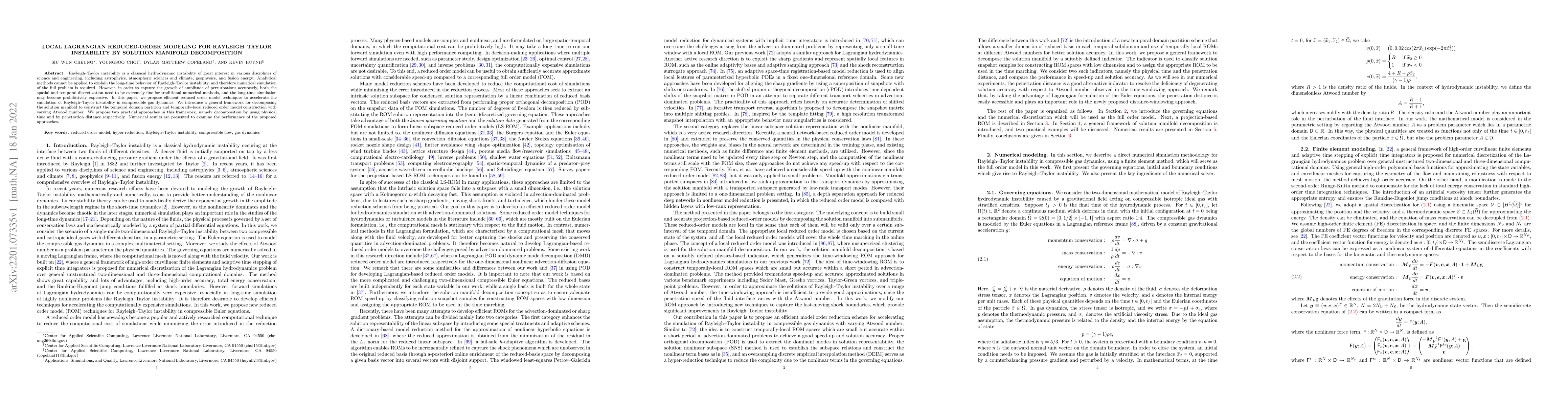 A new approach to simulate Rayleigh-Taylor instability using reduced order modeling is proposed, which reduces computational cost without sacrificing accuracy, enabling long-time simulations in compressible gas dynamics.