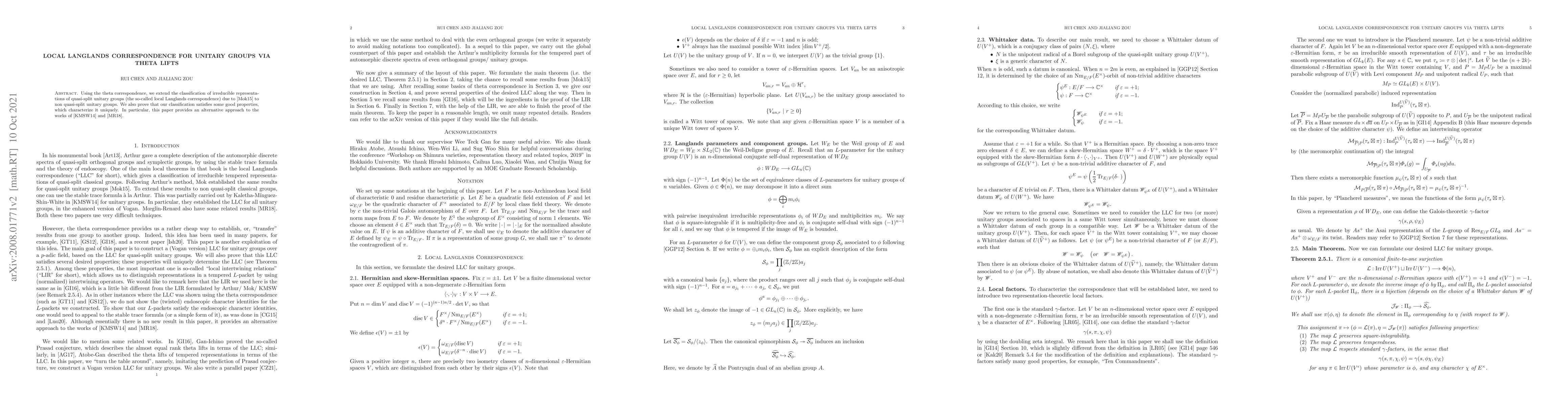 This paper extends the local Langlands correspondence for quasi-split unitary groups to non-quasi-split ones using theta lifts, offering a unique classification that satisfies desirable properties, providing an alternative to previous approaches by Kaletha-Minguez-Shin-White and Moeglin-Renard.