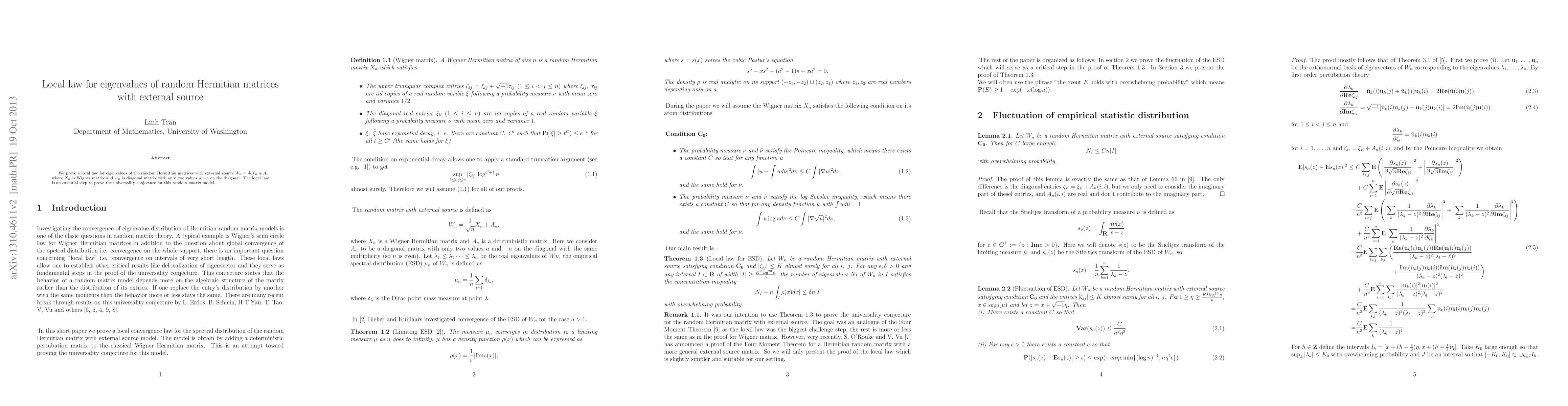 This paper proves a local law for eigenvalues of random Hermitian matrices with an external source, showing that the eigenvalue distribution is universal and supporting the universality conjecture for this model.