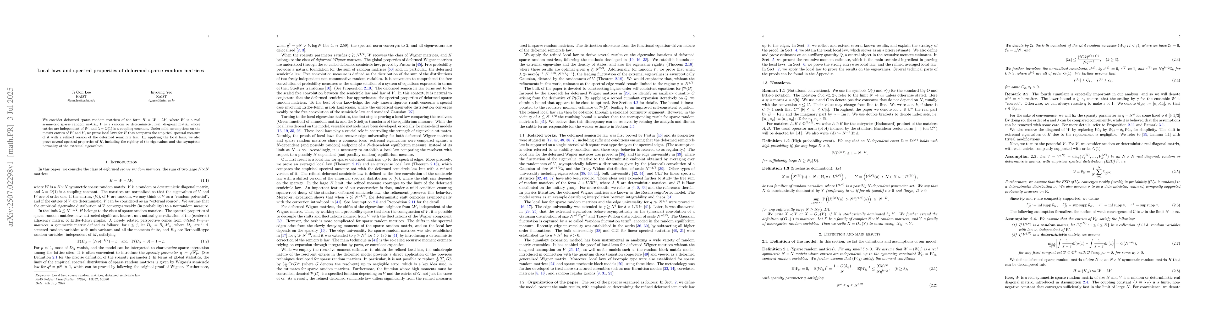 The research employs a combination of analytical techniques and numerical simulations to study deformed sparse random matrices, focusing on local laws and spectral properties.