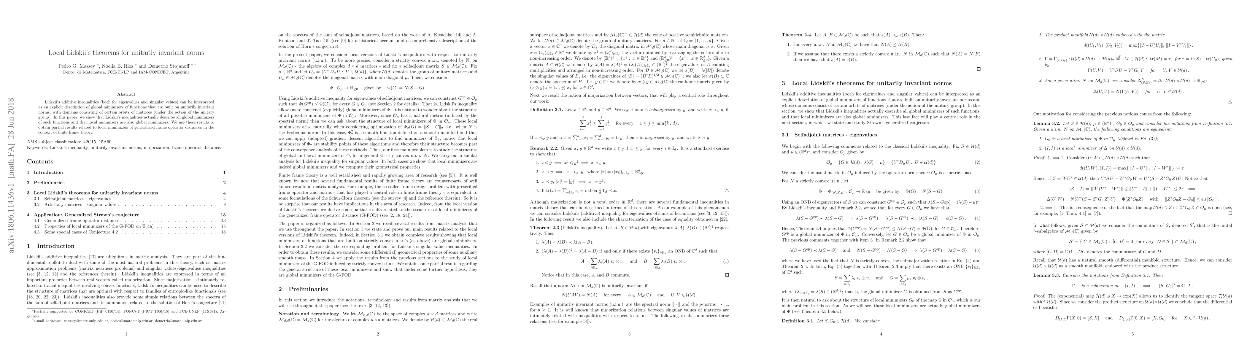 This paper proves that Lidskii's inequalities globally minimize functions built on unitarily invariant norms, showing that all local minimizers are also global. It extends these results to analyze local minimizers of generalized frame operator distances in finite frame theory.
