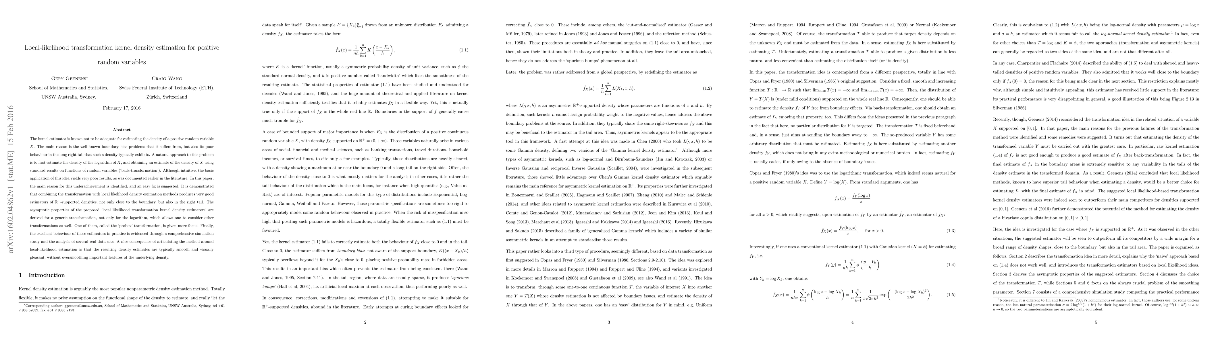 This paper proposes a method combining local-likelihood density estimation with a transformation kernel density estimator to accurately estimate the density of positive random variables, addressing boundary bias and tail issues. The method is shown to perform well through simulations and real data analysis, offering smooth and feature-preserving density estimates.