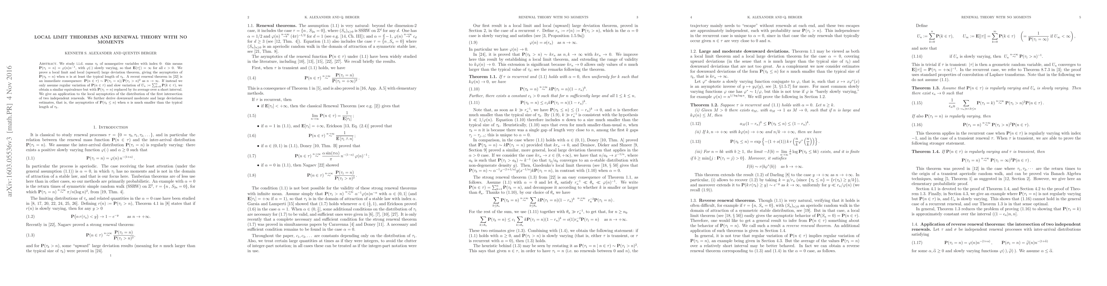 This research paper presents local limit theorems and large deviation theorems for i.i.d. sums of nonnegative variables with no moments. It proves asymptotics for probabilities of these sums taking specific values, and establishes a renewal theorem by Nagaev as a consequence. The study also explores scenarios with regularly varying and slowly varying probability functions, deriving local asymptotics for first intersection of independent renewals. Additionally, it provides downward moderate and large deviations estimates for cases where the considered value is much smaller than the typical sum length.