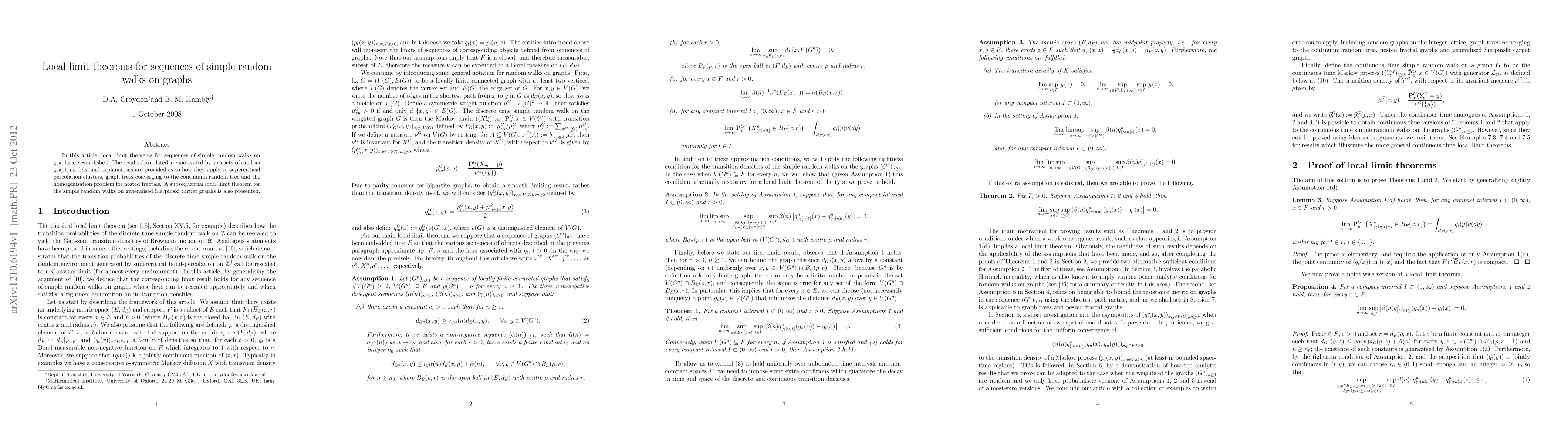 This paper establishes local limit theorems for sequences of simple random walks on graphs, motivated by applications to random graph models, supercritical percolation clusters, and fractals, including a result for generalised Sierpinski carpet graphs. The theorems provide insights into the behavior of these random walks in various graph settings.