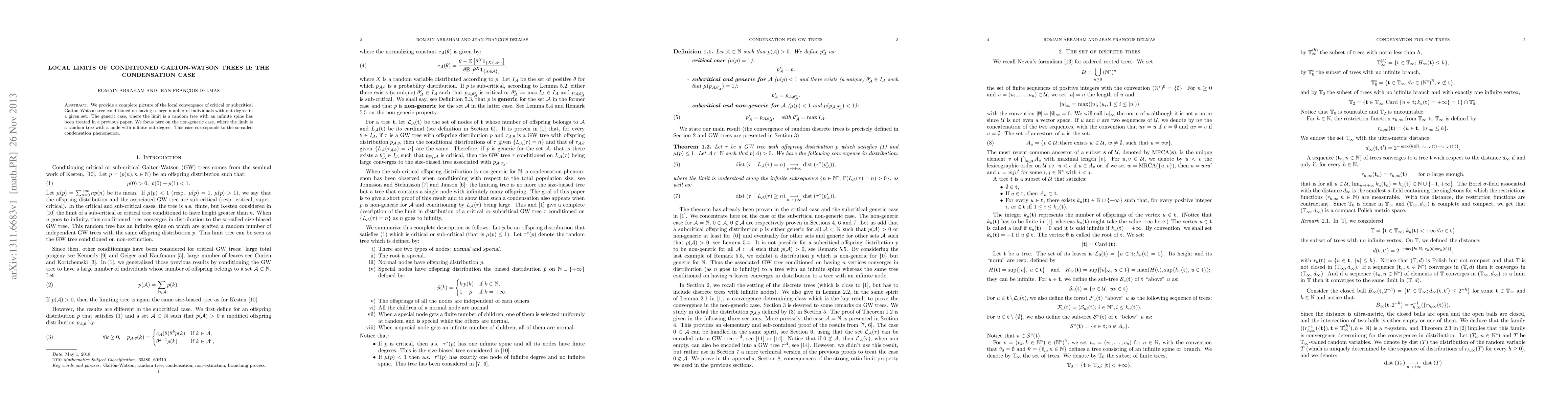 This paper explores the local limits of conditioned Galton-Watson trees in the non-generic condensation case, where the limit is a random tree featuring a node with infinite out-degree, contrasting with the previously studied infinite spine scenario.