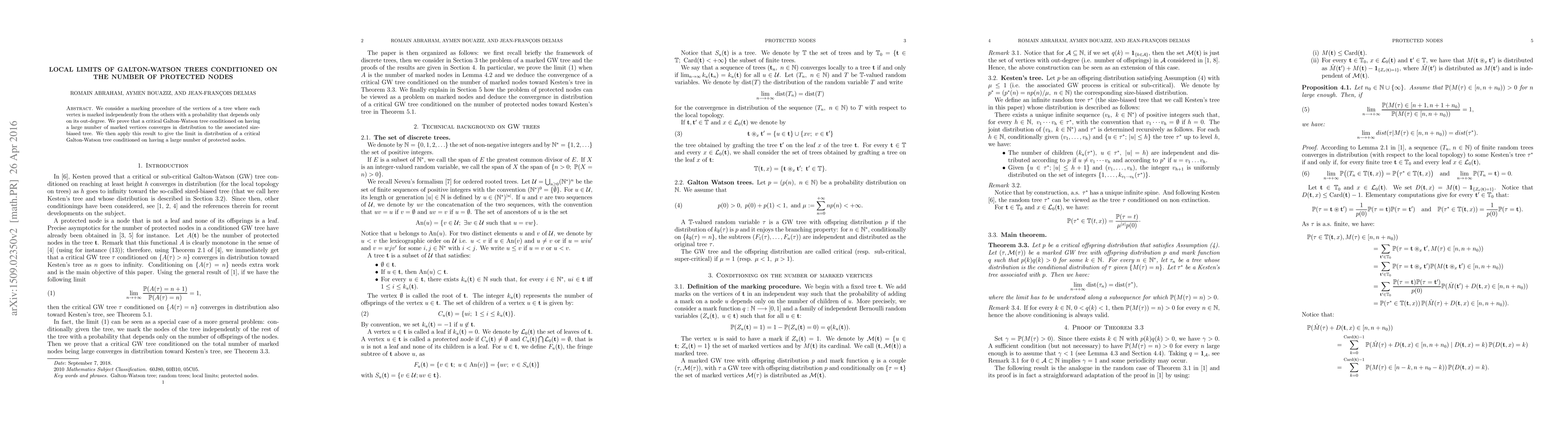 This paper studies a Galton-Watson tree marked based on vertex out-degree, proving that conditioned on a large number of marked vertices, it converges to the size-biased tree. The result is applied to determine the distribution limit of trees conditioned on having many protected nodes.